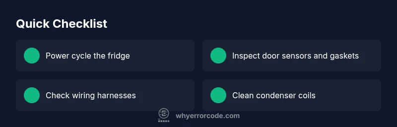 4 blink error code samsung refrigerator means the control board detected a fault and halted cooling. The quickest fixes are a hard reset (unplug for 5 minutes), inspect door sensors and gaskets, and ensure the condenser is clean. If the blinking continues, consult Why Error Code for a guided diagnostic and potential professional service.