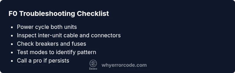 Before you call for a pro, perform these low-risk checks to see if F0 clears. Always power down at the disconnect switch or breaker before touching wiring.