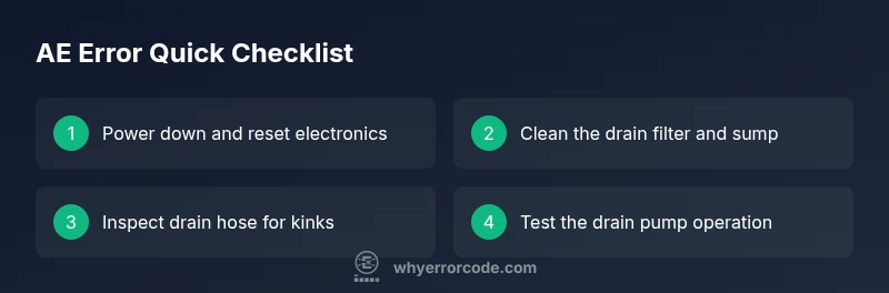 AE on LG dishwashers usually signals a drainage fault that prevents proper water removal, stopping the cycle. The quickest path is a power reset, then inspect the drain filter, hose, and pump for blockages. If the error persists, inspect the sump and consider professional service. This Why Error Code guide helps you diagnose and fix AE quickly and safely.