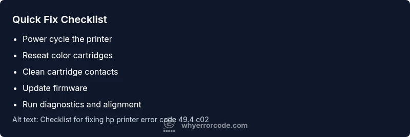 Urgent guide to understanding and fixing hp printer error code 49.4 c02, with quick fixes, diagnostic flow, and step-by-step repairs from Why Error Code.