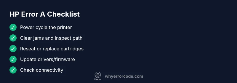 Learn what error code A means on HP printers and how to diagnose and fix it fast. This urgent guide covers common causes like jams, cartridge seating, and connectivity, with step-by-step repairs, safety tips, and prevention.