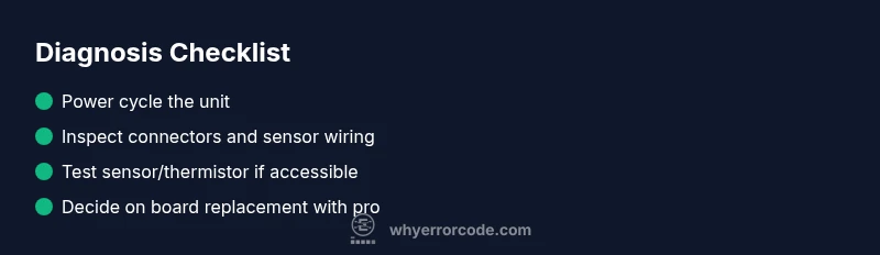 The whirlpool stove f2 e1 error code is typically accompanied by symptoms like the oven refusing to heat, inconsistent temperature readings, or a locked-out control panel. Common causes, listed by likelihood, include faulty temperature sensor/thermistor (high), damaged or loose wiring harness (medium), and a control board fault or communication error (low). Quick fixes include testing or replacing the sensor, inspecting and reseating the wiring, and performing a full control-board reset if supported by your model. If the error persists after these steps, the fault most likely lies with the control board or a damaged sensor that requires professional replacement. Always verify warranty coverage and service options before paying out-of-pocket in 2026.