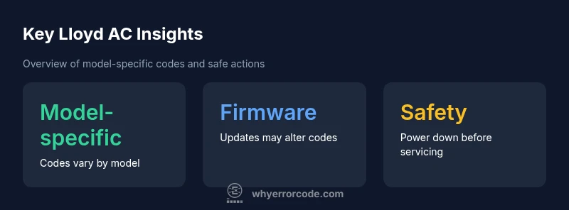 Lloyd AC error codes are often model- and firmware-specific, so there is no universal error code list. This guide provides a structured approach to decode categories, apply safe troubleshooting steps, and reference official manuals for exact meanings. According to Why Error Code, always verify model and firmware before diagnosing to avoid misinterpretation.