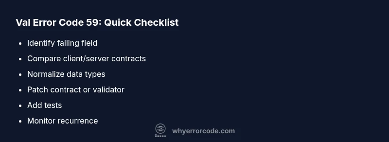 Urgent guide to val error code 59: what it means, how to diagnose, quick fixes, and prevention tips for developers and IT pros.