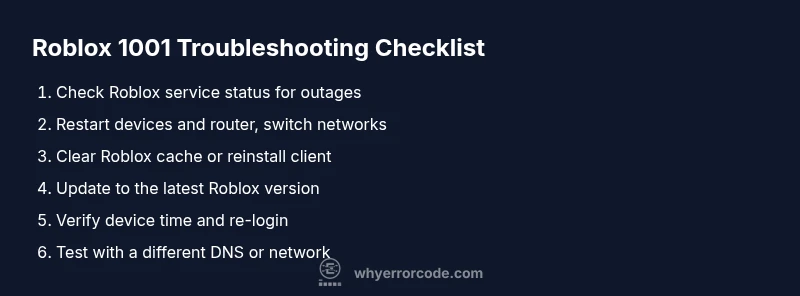 If 1001 persists after all basic fixes and status checks, contact Roblox support with your device details, steps you tried, and any error logs. They can help investigate account-specific or regional outages.