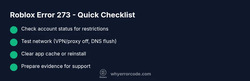 Roblox error 273 typically means your access is restricted. Start by confirming your account status and follow the recommended steps to regain access.