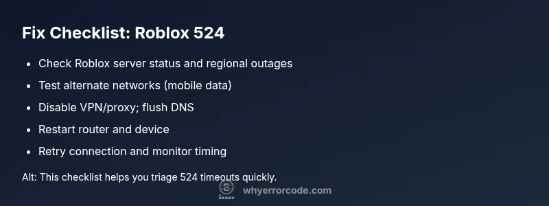 An urgent, practical guide to diagnosing and fixing error code 524 roblox francais. Learn quick fixes, diagnostic flow, step-by-step repairs, and prevention tips from Why Error Code.
