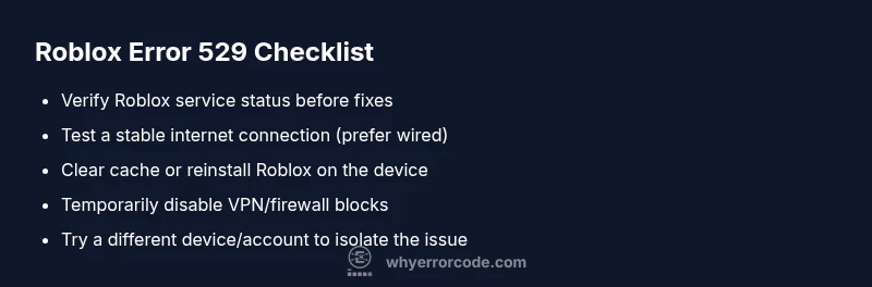 Roblox error 529 usually means a connectivity or login problem; start with network checks and status, then refresh the app.