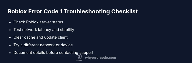 There is no official Roblox status labeled 'Error Code 1.' Most reports are generic failures tied to connectivity, cache, or account restrictions. Use the diagnostic steps in this guide to verify your environment.
