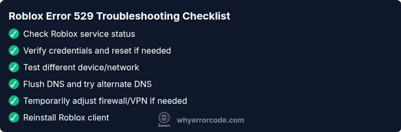 Roblox error 529 means a login or session problem. Check your credentials, test your network, and verify Roblox's service status.