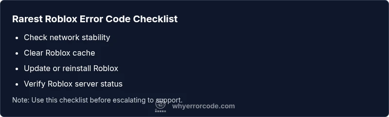 The rare Roblox error code is an edge-case fault not in the standard list. It needs targeted checks across client, network, and server.