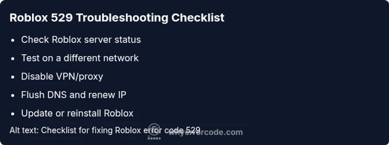 Roblox error code 529 signals a connection failure between your device and Roblox services. It usually means a network issue on your end, a VPN/proxy interference, or a temporary Roblox server problem. Start with quick network checks, pause VPNs, and verify Roblox status before moving to deeper fixes.