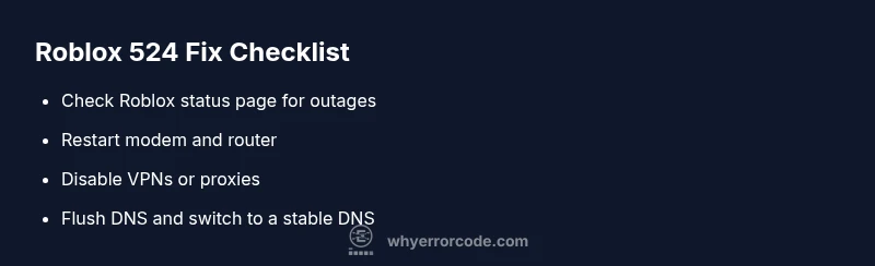 Error code 524 in Roblox indicates a gateway timeout between your device and Roblox servers. The quickest fixes are to restart your modem and router, disable VPNs or proxies, and verify Roblox's server status before reconnecting. If issues persist, try a different network or contact your ISP for help.
