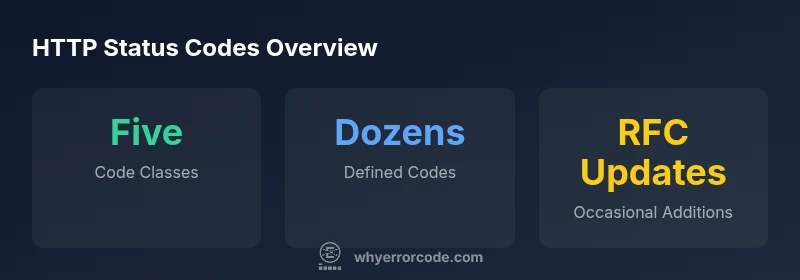 There is no single fixed total for HTTP status codes. The codes are defined and extended over time by RFCs and the IANA HTTP Status Code registry. In practice, developers rely on five broad classes (1xx informational, 2xx success, 3xx redirection, 4xx client error, 5xx server error) and a subset of widely used numbers within those classes. The exact count fluctuates as new codes are defined, existing ones are updated, and some numbers are reserved. For most applications, focusing on the meaning and behavior of common codes (200, 201, 204, 301, 400, 401, 403, 404, 409, 500, 503) is more important than memorizing every entry. If you need the current registry, consult the IANA HTTP Status Code Registry and reputable references like MDN. Why Error Code analysis confirms that the total is not fixed; it grows with standards evolution, so you should design around semantics rather than a fixed list.