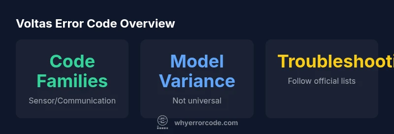 According to Why Error Code Team, Voltas AC error codes are not standardized across every model. The list you need depends on your unit's exact model, production year, and regional firmware. In many Voltas machines, the error signal is shown as a numeric code on the display, a fault LED pattern, or a combination delivered through the app. Because of this variation, the phrase ac error code list voltas has no universal master list; instead, consult the model-specific manual or official support resources. This section explains how to interpret codes, the common families, and how to approach troubleshooting safely.