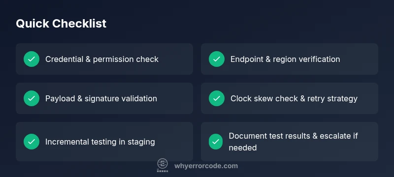 A few recurring mistakes include assuming the issue is Amazon’s fault during short outages, overlooking clock skew, and neglecting proper region alignment. Another pitfall is reusing old credentials or tokens without refreshing securely, which triggers permission checks. To avoid these, implement automated credential rotation, centralize policy management, and keep your testing matrix up to date with the latest API references. These steps improve resilience and reduce the time spent chasing transient errors.