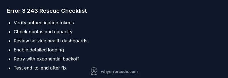 - Ignoring downstream dependencies. A fault in a dependent service can surface as 3 243, so validate all linked services.