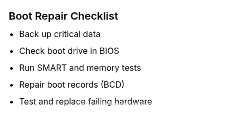 - Prioritize boot-drive health and boot configuration