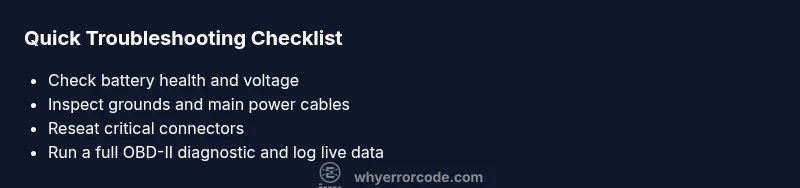 - Power and grounds: poor battery condition, loose grounds, or corroded terminals. Quick fix: clean and tighten connections, re-test voltage, then re-scan.