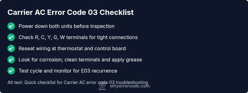 Learn what Carrier AC error code 03 means, common causes, and proven fixes. An urgent, step-by-step guide for technicians and homeowners. Safety notes included.