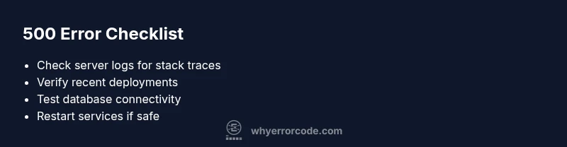 Learn what error code 500 means, its most common server-side causes, and practical steps to diagnose and fix it quickly. This urgent guide provides a clear diagnostic flow, step-by-step fixes, and best practices for preventing future downtime.
