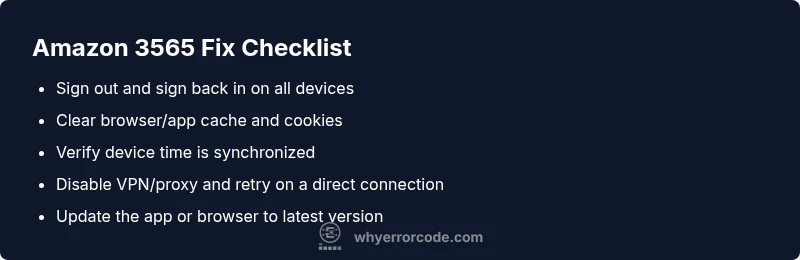 If you’re facing the error code on amazon 3565, start with these fast steps to restore access: