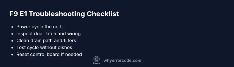 Why Error Code analysis notes that f9 e1 often stems from interlock or drainage issues, so prioritize checks in that order. This prioritization helps you avoid unnecessary parts replacement and reduces repair time.