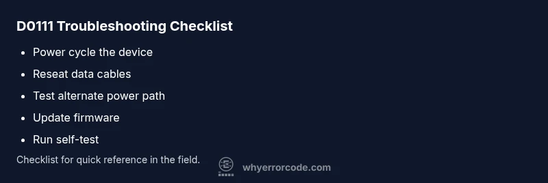 Error code d0111 generally signals a critical communication fault within your device or system. The quickest path to reliability is a rapid triage: power cycle the unit, verify all cables are seated, and re-run the diagnostic. If the code reappears, proceed with the step-by-step fix below and prepare for a potential professional service if needed.