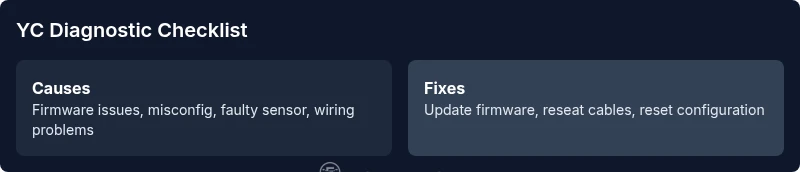Power down safely, collect logs, and note the exact YC code context (startup vs. runtime). This baseline helps separate software from hardware issues.