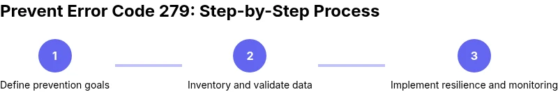 No single fix guarantees the elimination of error code 279. You can, however, reduce its occurrence by tightening data validation, ensuring deterministic behavior, mitigating dependency failures, and maintaining strong observability.