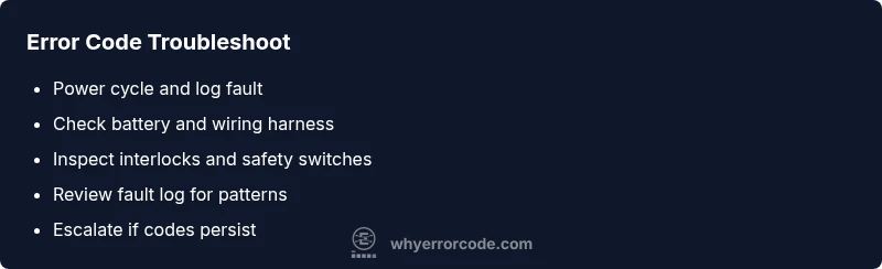 - If codes recur, consult the service manual for battery and power management diagnostics or escalate to a qualified technician. Tip: Document all steps and fault codes to speed up service calls and prevent repeated trips.