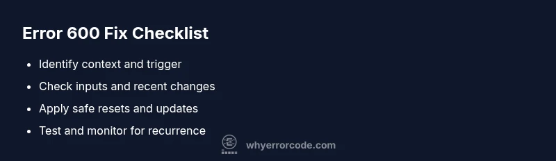 Learn what is error code 600, its common causes, and practical fixes. An urgent, step-by-step guide for developers and IT pros to diagnose quickly and safely.