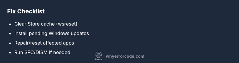 Diagnose and fix Microsoft Store error 0x80073cf9 quickly with practical steps. This Why Error Code guide covers cache resets, Windows updates, and repair methods for developers and IT pros.
