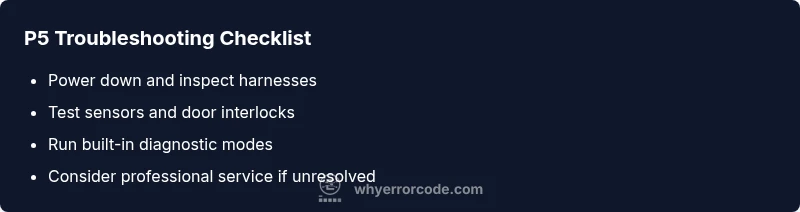 P5 means a sensor or communication fault in the control system. Start with a safe reset and check connections before deeper repairs.