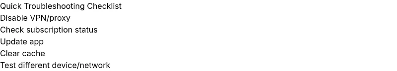 Turn off any VPNs or proxy services and reconnect to your regular network. Then re-test playback.