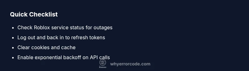 Each cause has a practical fix. Start with token refresh, ensure respectful request pacing, and verify your device time. If you are a developer using Roblox APIs, adopt exponential backoff and robust error handling to avoid re-tripping the 429 gate.