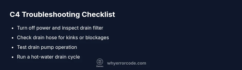 C4 indicates a drainage fault where water isn't exiting the tub properly. It often results from a clog, hose issue, or pump fault and stops the cycle. Clarifying the exact cause requires step-by-step checks of filters, hoses, and the pump.