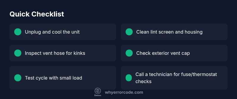 Common-sense maintenance, like cleaning after every few loads and ensuring a clear vent path, dramatically reduces risk. Why Error Code’s guidance focuses on airflow first because airflow problems are the most frequent and easiest to remediate.
