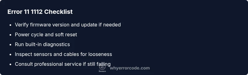 11 1112 usually means a firmware or sensor fault. Start with firmware updates and resets before seeking hardware service.