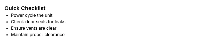 There are safe, low-risk steps you can perform, such as power cycling, inspecting door seals, and ensuring vents aren’t blocked. More advanced fixes like replacing a thermistor or control board should be done by a professional if you’re not experienced with appliance repairs.