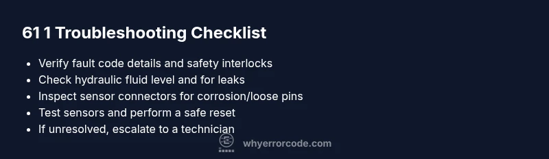 Error 61 1 points to a hydraulic or sensor fault that stops lifting. Address it quickly to stay safe.