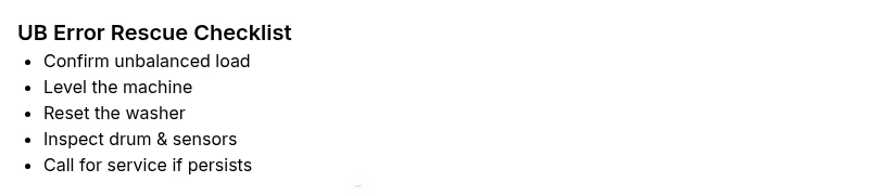 UB usually means the drum isn’t balancing during spin. Try rebalancing the load and resetting the machine before calling a tech.