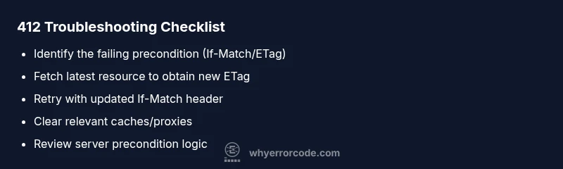 Urgent guide to understanding update error code 412 (Precondition Failed), diagnosing causes, and applying fast, safe fixes for developers and IT pros.