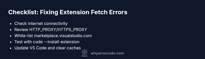 A comprehensive, step-by-step guide to diagnose and fix the vs code error fetching extensions xhr failed, covering network, proxies, firewall, and CLI-based workarounds.