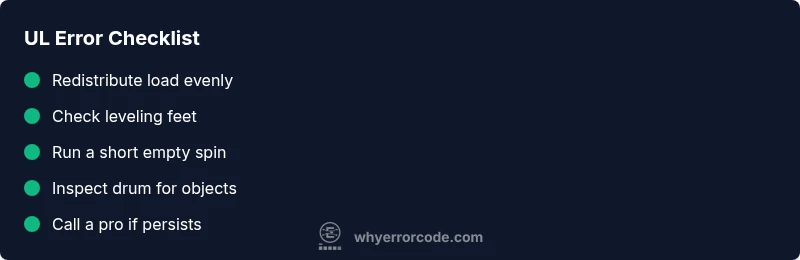 If UL persists after these steps, the imbalance may involve suspension components, bearings, or a warped drum. A professional diagnosis is advised.