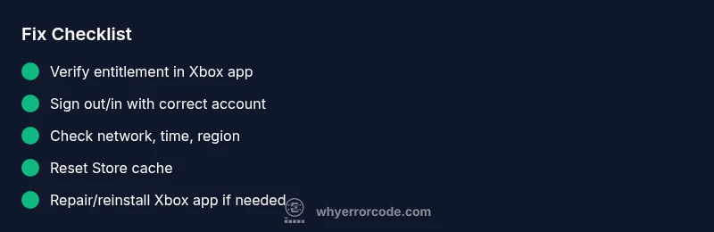 - Relaunch after a clean sign-in: Close all Xbox-related apps, wait a few seconds, and reopen to trigger fresh entitlement checks. If the error persists after these checks, you’re ready for the diagnostic flow and step-by-step fixes.